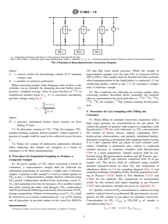 SIGNIFICANCE AND USE 5.1 The standard method for taking representative UF6 sample from a cylinder is collecting from UF6 liquid phase. Homogeneity of material is obtained by the basic indicator, that is, content of uranium isotope. Representativeness of a sample by other indicators such as content of highly volatile admixtures (boron fluoride, silicon fluoride, organic impurities), admixtures generating non-volatile fluorides may not be satisfactory owing to differences between physical properties of admixture and UF6. Nevertheless, such sampling is widely applied during the product quality control due to the fact that liquid phase process is applied when filling transport containers both for feedstock UF6 and enriched one. Refer to Practice C1052 for UF6 liquid phase sampling practice. 5.2 Uranium hexafluoride is normally produced and handled in large (typically 1 to 14-ton) quantities and must, therefore, be characterized by reference to representative samples (see ISO 7195:2005). The samples are used to determine compliance with the applicable commercial Specification C996. The quantities involved, physical properties, chemical reactivity, and hazardous nature of UF6 are such that for representative sampling, specially designed equipment must be used and operated in accordance with the most carefully controlled and stringent procedures. This practice can be used by UF6 enrichers to review the effectiveness of existing procedures or as a guide to the design of equipment and procedures for future use. 5.3 It is emphasized that this practice is not meant to address conventional or nuclear criticality safety issues. SCOPE 1.1 This practice covers the methods for withdrawing samples of enriched uranium hexafluoride (UF6) during and after a transfer occurring in the gas phase in order to determine compliance with Specification C996. It is applicable to the filling of a transport UF6 container (30B cylinder or 1 m3 vertical container) at a centrifuge enrichment facility that has been fed with UF6 that complies with Specification C787. 1.2 Since UF6 sampling is taken during the filling process, this practice does not address any special additional arrangements that may be agreed upon between the buyer and the seller when the sampled bulk material is being added to residues already present in a container (“heels recycle”). Such arrangements will be based on QA procedures such as traceability of cylinder origin (to prevent, for example, contamination with irradiated material). 1.3 This practice is only applicable when the transfer occurs in the gas phase. When the transfer is performed in the liquid phase, Practice C1052 should apply. 1.4 The scope of this practice does not include provisions for preventing criticality incidents. 1.5 The values stated in SI units are to be regarded as the standard. The values given in parentheses are for information only. 1.6 This standard does not purport to address all of the safety concerns, if any, associated with its use. It is the responsibility of the user of this standard to establish appropriate safety, health, and environmental practices and determine the applicability of regulatory limitations prior to use. 1.7 This international standard was developed in accordance with internationally recognized principles on standardization established in the Decision on Principles for the Development of International Standards, Guides and Recommendations issued by the World Trade Organization Technical Barriers to Trade (TBT) Committee.