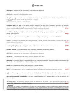 ASTM D1356-20a: Standard Terminology Relating to Sampling and Analysis of Atmospheres is an international standard developed by ASTM International under Committee D22 on Air Quality. This document collects and standardizes terminology, definitions, and nomenclature widely used in the sampling and analysis of atmospheric environments, including ambient, indoor, and workplace air. By harmonizing vocabulary, ASTM D1356-20a facilitates consistent communication and documentation for professionals involved in air quality assessment, environmental monitoring, and related laboratory activities.