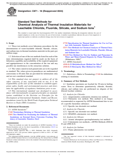 ASTM C871-18(2023) - Standard Test Methods for Chemical Analysis of Thermal Insulation Materials for Leachable Chloride, Fluoride, Silicate, and Sodium Ions