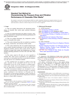 ASTM D6830-02(2022) - Standard Test Method for Characterizing the Pressure Drop and Filtration Performance of Cleanable Filter Media