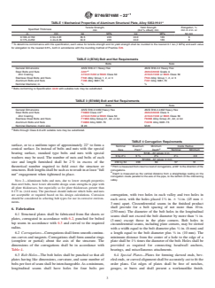 The standard details requirements for aluminum alloy structural plate, which must be fabricated from flat sheets or plates, then corrugated, punched for lap seams, and curved as needed. Only specific aluminum alloys and tempers are permitted, ensuring consistent strength and durability.