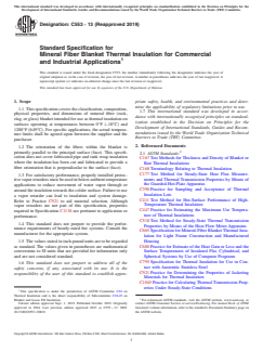 ASTM C553-13(2019) - Standard Specification for Mineral Fiber Blanket Thermal Insulation for Commercial and Industrial Applications