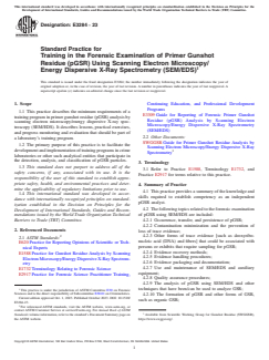 ASTM E3284-23 - Standard Practice for Training in the Forensic Examination of Primer Gunshot Residue (pGSR) Using Scanning Electron Microscopy/Energy Dispersive X-Ray Spectrometry (SEM/EDS)