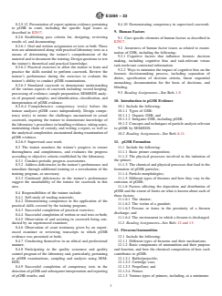 SIGNIFICANCE AND USE 5.1 This practice is intended to be used by subject matter experts in the field of forensic pGSR analysis who have met their laboratory’s technical requirements to be assigned to the role of trainer in the category of testing that deals with the detection, analysis, and classification of pGSR particles. 5.2 This practice is intended to be used in conjunction with Practice E2917, as well as the laboratory’s existing generalized training protocols, standard operating procedures, and quality practices, to develop a complete training-to-competency program in pGSR analysis by SEM/EDS. This practice provides the required additional, discipline-specific elements for pGSR analysis by SEM/EDS, in accordance with 5.3.2 of Practice E2917; it does not include the core specific elements covered in 5.3.1 of Practice E2917. 5.3 The topics and procedures outlined in this practice are grounded in the body of scientific literature that exists in the field of pGSR examination. 5.3.1 Additional sources of information on pGSR examination, not specifically mentioned in this document, should be considered, added, or substituted. A review of new sources of information on general forensic methods and pGSR examinations should be carried out on a regular basis (e.g. annually or biannually) to incorporate well-established current findings and methods into the training program and to replace any outdated methods. 5.3.2 When possible, make additional training available to the trainee. Such training might include off-site short courses, short internships, and specialized training by experienced examiners. SCOPE 1.1 This practice describes the minimum requirements of a training program in primer gunshot residue (pGSR) analysis by scanning electron microscopy/energy dispersive X-ray spectroscopy (SEM/EDS). It describes lessons, practical exercises, and progress monitoring and evaluation that should be part of a laboratory’s training program. 1.2 The primary purpose of this practice is to facilitate the development and implementation of training programs in crime laboratories or other such analytical entities that participate in the detection, analysis, and classification of pGSR particles. 1.3 This standard does not purport to address all of the safety concerns, if any, associated with its use. It is the responsibility of the user of this standard to establish appropriate safety, health, and environmental practices and determine the applicability of regulatory limitations prior to use. 1.4 This international standard was developed in accordance with internationally recognized principles on standardization established in the Decision on Principles for the Development of International Standards, Guides and Recommendations issued by the World Trade Organization Technical Barriers to Trade (TBT) Committee.