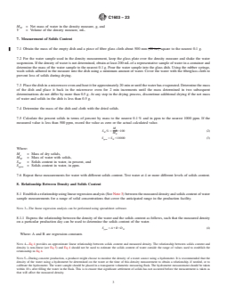 - Measurement of Solids Content: Establishes the process for quantifying solids in water, either directly or through density correlation, using calibrated apparatus and repeatable procedures.