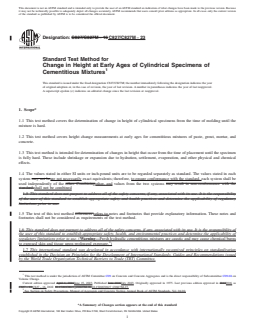 REDLINE ASTM C827/C827M-23 - Standard Test Method for Change in Height at Early Ages of Cylindrical Specimens of Cementitious Mixtures