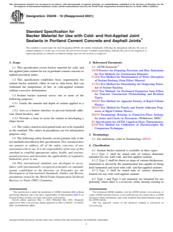 ASTM D5249-10(2021) - Standard Specification for Backer Material for Use with Cold- and Hot-Applied Joint Sealants in Portland Cement Concrete and Asphalt Joints