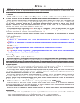 ASTM E1432-19 is a standard published by ASTM International. Its full title is "Standard Practice for Defining and Calculating Individual and Group Sensory Thresholds from Forced-Choice Data Sets of<brk/> Intermediate Size". This standard covers: SIGNIFICANCE AND USE 6.1 Sensory thresholds are used to determine the potential of substances at low concentrations to impart odor, taste, skinfeel, etc. to some form of matter. 6.2 Thresholds are used, for example, in setting limits in air pollution, in noise abatement, in water treatment, and in food systems. 6.3 Thresholds are used to characterize and compare the sensitivity of individuals or groups to given stimuli, for example, in medicine, ethnic studies, and the study of animal species. SCOPE 1.1 The definitions and procedures of this practice apply to the calculation of individual thresholds for any stimulus in any medium, from data sets of intermediate size, that is, consisting of more than 20 to 40 3-AFC presentations per individual. A group threshold may be calculated using 5 to 15 individual thresholds. 1.2 This standard does not purport to address all of the safety concerns, if any, associated with its use. It is the responsibility of the user of this standard to establish appropriate safety, health, and environmental practices and determine the applicability of regulatory limitations prior to use. 1.3 This international standard was developed in accordance with internationally recognized principles on standardization established in the Decision on Principles for the Development of International Standards, Guides and Recommendations issued by the World Trade Organization Technical Barriers to Trade (TBT) Committee.