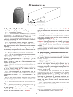 SIGNIFICANCE AND USE 4.1 It is anticipated that this practice will be referenced by certifiers, purchasers, and other users in order to meet their specific needs. Those users will specify which conditioning procedures are applicable. SCOPE 1.1 This practice applies to the conditioning of hard armor test items prior to ballistic resistance testing. Hard armor is an item of personal protective equipment that is constructed of rigid materials and is intended to protect the wearer from threats that may include ballistic threats, stabbing, fragmentation, or blunt impact, or combinations thereof. (Terminology E3005.) Hard armor is also referred to as hard armor plate and plate. Note 1: Ballistic resistance testing is not covered in this practice. 1.2 This practice describes requirements for subjecting test items to conditions intended to assess the capability of the test item to withstand environmental conditions that induce responses similar to those that might result from conditions encountered during use. This practice includes the conditioning procedures listed below: 1.2.1 Controlled ambient conditioning procedure, 1.2.2 Thermal/temperature shock procedure, 1.2.3 Temperature extremes procedure, 1.2.4 Weathering procedure, 1.2.5 Fluid exposure procedure, 1.2.6 Altitude exposure procedure, 1.2.7 Vibration conditioning procedure, 1.2.8 Impact Durability pre-conditioning, 1.2.9 Impact Durability procedure for torso front and back plates, and 1.2.10 Impact Durability procedure for other plates (that is, other than torso front and back plates). 1.3 The user of this practice shall determine which conditioning procedures apply. Note 2: This practice may not be applicable to all types of hard armor. 1.4 In this practice, “other standards and specifications” and “unless specified elsewhere” refer to documents (for example, military standards, purchase specifications) that require the use of this practice. Purchasers and other users are responsible for the “other standards and specifications” and for specifying any requirements that supersede those of this practice. 1.5 This practice does not address pass/fail requirements for test items subjected to these procedures. 1.6 This practice does not address visual inspections or radiographic inspections of test items that may be required prior to or following conditioning. Note 3: It is recommended that a thorough visual examination of each test item prior to and after the exposures be performed to document any change in physical appearance resulting from the exposure. 1.7 This practice does not address subsequent conditioning or testing of test items. 1.8 Units—The values stated in either SI units or inch-pound units are to be regarded separately as standard. The values stated in each system are not necessarily exact equivalents; therefore, to ensure conformance with the standard, each system shall be used independently of the other, and values from the two systems shall not be combined. 1.8.1 The user of this standard will identify the system of units to be used, and it is critical to ensure that any cross-referenced standards maintain consistency of units between standards. 1.9 This standard does not purport to address all of the safety concerns, if any, associated with its use. It is the responsibility of the user of this standard to establish appropriate safety, health, and environmental practices and determine the applicability of regulatory limitations prior to use. 1.10 This international standard was developed in accordance with internationally recognized principles on standardization established in the Decision on Principles for the Development of International Standards, Guides and Recommendations issued by the World Trade Organization Technical Barriers to Trade (TBT) Committee.