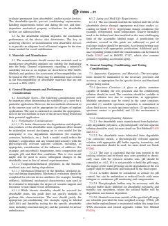 4.2 The test methods used to evaluate the mechanical performance of absorbable devices are similar to those used to evaluate permanent (non-absorbable) cardiovascular devices. The absorbable-specific pre-test conditioning requirements, handling requirements before and during the test, and time-dependent mechanical property evaluations for absorbable devices are addressed here.