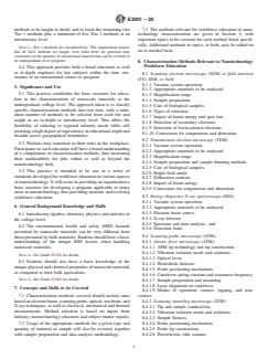 1.2 This practice may be used to develop or evaluate an education program for characterization in the nanotechnology field. It provides listings of key methods that are relevant to such a program, with a minimum number of these methods to be taught as a requirement for such an education. This practice does not provide specific course material to be used in such a program.