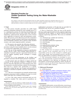 1.2.2 For use in the preparation of process specifications dealing with the visible, water-washable liquid penetrant examination of materials and parts. Agreement between the user and the supplier regarding specific techniques is strongly recommended.