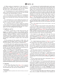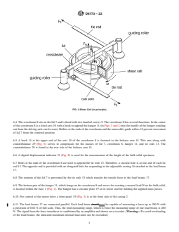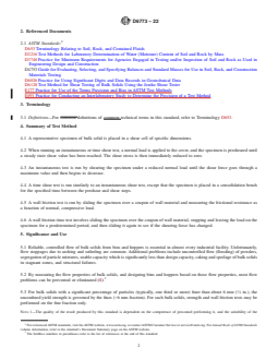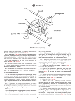 SIGNIFICANCE AND USE 5.1 Reliable, controlled flow of bulk solids from bins and hoppers is essential in almost every industrial facility. Unfortunately, flow stoppages due to arching and ratholing are common. Additional problems include uncontrolled flow (flooding) of powders, segregation of particle mixtures, usable capacity which is significantly less than design capacity, caking and spoilage of bulk solids in stagnant zones, and structural failures. 5.2 By measuring the flow properties of bulk solids, and designing bins and hoppers based on these flow properties, most flow problems can be prevented or eliminated (1).3 5.3 For bulk solids with a significant percentage of particles (typically, one third or more) finer than about 6 mm (1/4 in.), the unconfined yield strength is governed by the fines (−6 mm fraction). For such bulk solids, strength and wall friction tests may be performed on the fine fraction only. Note 1: The quality of the result produced by this standard is dependent on the competence of personnel performing it, and the suitability of the equipment and facilities used. Agencies that meet the criteria of Practice D3740 are generally considered capable of competent and objective testing/sampling/inspection/etc. Users of this standard are cautioned that compliance with Practice D3740 does not in itself ensure reliable results. Reliable results depend on many factors; Practice D3740 provides a means of evaluating some of those factors. Practice D3740 was developed for agencies engaged in the testing or inspection (or both) of soil and rock. As such it is not totally applicable to agencies performing this standard. However, users of this standard should recognize that the framework of Practice D3740 is appropriate for evaluating the quality of an agency performing this standard. Currently there is no known qualifying national authority that inspects agencies that perform this standard. SCOPE 1.1 This test method covers the apparatus and procedures for measuring the unconfined yield strength of bulk solids during both continuous flow and after storage at rest. In addition, measurements of internal friction, bulk density, and wall friction on various wall surfaces are included. 1.2 This test method covers operation of the manually-controlled Schulze Ring Shear Tester. An automated version of this tester is also available. Its method of testing bulk solids is similar in principle to that described in this test method. 1.3 The most common use of this information is in the design of storage bins and hoppers to prevent flow stoppages due to arching and ratholing, including the slope and smoothness of hopper walls to provide mass flow. Parameters for structural design of such equipment may also be derived from this data. Another application is the measurement of the flowability of bulk solids, for example, for comparison of different products or optimization. 1.4 All observed and calculated values shall conform to the guidelines for significant digits and rounding established in Practice D6026. 1.4.1 The procedures used to specify how data are collected/recorded or calculated in this standard are regarded as the industry standard. In addition, they are representative of the significant digits that generally should be retained. The procedures used do not consider material variation, purpose for obtaining the data, special purpose studies, or any considerations for the user’s objectives: and it is common practice to increase or reduce significant digits of reported data to be commensurate with these considerations. It is beyond the scope of this standard to consider significant digits used in analysis methods for engineering design. 1.5 Units—The values stated in SI units are to be regarded as standard. No other units of measure are included in this standard. 1.6 This standard does not purport to address all of the safety concerns, if any, associated with its use. It is the respons...