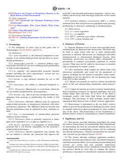 1.3 This practice is applicable to antimicrobial agents that are incorporated into either the metalworking fluid concentrate or end-use dilution. It is also applicable to metalworking fluids that are formulated using non-microbicidal, inherently bioresistant components.