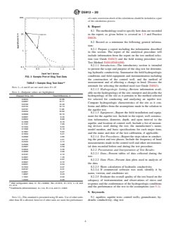- Reporting Requirements: The standard specifies details to be included in reports, such as well construction data, field procedures, equipment calibration, head measurement frequency, data tables, and plots.