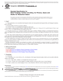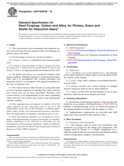 1.1 This specification covers normalized and tempered carbon steel and quenched and tempered alloy steel forgings for pinions, gears, and shafts.