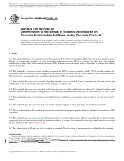 1.2 This standard is referenced in the guideline document for MIC of concrete products. Guide C1894 provides guidance for microbially-induced corrosion of concrete products and an overview of where this test, and its options, can and should be used. This document is not intended to be a guideline document for MIC of concrete products.