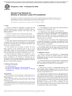 ASTM C520-15(2020) - Standard Test Methods for Density of Granular Loose Fill Insulations