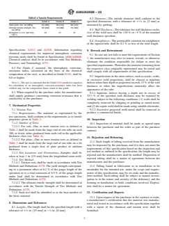 ASTM A595/A595M-22 is a technical specification published by ASTM International. Its full title is "Standard Specification for Steel Tubes, Low-Carbon or High-Strength Low-Alloy, Tapered for Structural Use". This standard covers: ABSTRACT This specification covers three grades of seam-welded, round, tapered steel tubes for structural use. Grades A and B are of low-carbon steel or high-strength low-alloy steel composition and Grade C is of weather-resistance steel composition. The tube steel shall be hot-rolled aluminum-semikilled or fine-grained killed sheet or plate manufactured by one or more of the following processes: open-hearth, basic-oxygen, or electric-furnace. The tubes shall be made from trapezoidal sheet or plate that is preformed and then seam welded. They shall be brought to final size and properties by roll compressing cold on a hardened mandrel. A tensile test shall be done to determine the yield strength and the ultimate tensile strength of the tubes. SCOPE 1.1 This specification covers three grades of seam-welded, round, tapered steel tubes for structural use. Grades A and B are of low-carbon steel or high-strength low-alloy steel composition and Grade C is of weather-resistant steel composition. 1.1.1 The product may be modified from its round cross section into other shapes without subsequent retesting. 1.2 This tubing is produced in welded sizes in a range of diameters from 2 3/8 to 30 in. [60 to 762 mm] inclusive. Wall thicknesses range from 0.1046 to 0.375 in. [2.66 to 9.53 mm]. Tapers are subject to agreement with the manufacturer. 1.3 The values stated in either SI units or inch-pound units are to be regarded separately as standard. The values stated in each system may not be exact equivalents; therefore, each system shall be used independently of the other. Combining values from the two systems may result in non-conformance with the standard. 1.4 This international standard was developed in accordance with internationally recognized principles on standardization established in the Decision on Principles for the Development of International Standards, Guides and Recommendations issued by the World Trade Organization Technical Barriers to Trade (TBT) Committee.