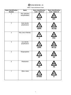 available resin identification designations.