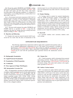 - Supplementary requirements include radiographic, liquid penetrant, tension, and intergranular corrosion testing.