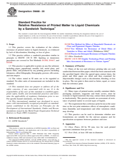 ASTM D6688-20 - Standard Practice for Relative Resistance of Printed Matter to Liquid Chemicals by a Sandwich Technique