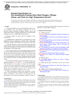 ASTM A989/A989M-23: Standard Specification for Hot Isostatically-Pressed Alloy Steel Flanges, Fittings, Valves, and Parts for High Temperature Service defines requirements for alloy steel components manufactured through hot isostatic pressing (HIP) and powder metallurgy for use in pressure systems subjected to high temperatures. Covered components include flanges, fittings, valves, and similar parts, produced to specified or standard dimensions. Designed for applications where structural integrity, chemical consistency, and mechanical reliability are critical, this standard addresses chemical composition, manufacturing processes, heat treatment, and quality control measures.