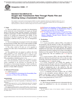 ASTM D3985-17 - Standard Test Method for Oxygen Gas Transmission Rate Through Plastic Film and Sheeting Using a Coulometric Sensor