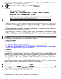 REDLINE ASTM D3985-17 - Standard Test Method for Oxygen Gas Transmission Rate Through Plastic Film and Sheeting Using a Coulometric Sensor