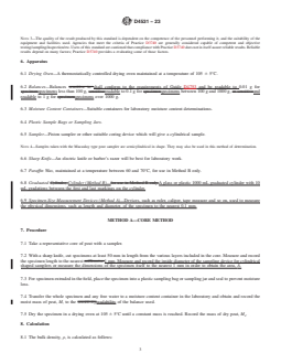 1.3 Method A—The core method covers the determination of the bulk density of a core of peat taken with a piston sampler or other suitable core sampler (Sections 7 and 8).