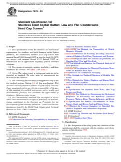 ASTM F879-23 - Standard Specification for Stainless Steel Socket Button, Low and Flat Countersunk Head Cap Screws