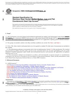REDLINE ASTM F879-23 - Standard Specification for Stainless Steel Socket Button, Low and Flat Countersunk Head Cap Screws