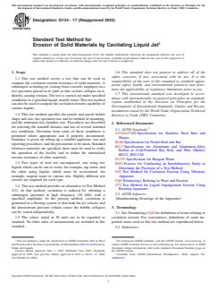 ASTM G134-17(2023) - Standard Test Method for Erosion of Solid Materials by Cavitating Liquid Jet