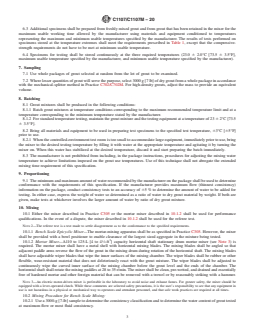 Provides requirements for mixing equipment, environmental conditioning, batching, and specified water-to-dry material ratios to achieve consistent results.Testing Procedures