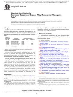 ASTM B372-22: Standard Specification for Seamless Copper and Copper-Alloy Rectangular Waveguide Tube is a widely recognized standard developed by ASTM International. This specification covers requirements for seamless copper and copper-alloy rectangular waveguide tubes designed for use as transmission lines in electronic equipment. The standard ensures product quality and performance by specifying chemical composition, mechanical, electrical, and dimensional properties for these tubes, which are frequently utilized in RF and microwave applications.