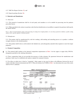 6.1 The material shall conform to the chemical composition requirements in Table 1 for the copper or copper alloy UNS No.