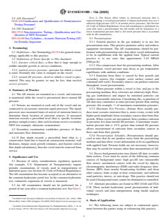 • Scope of Application: The standard covers procedures for AE examination of seamless vessels, excluding those in cryogenic service. It specifies pressurization above normal service levels and guides the use of either gas or liquid as the pressurizing medium.
