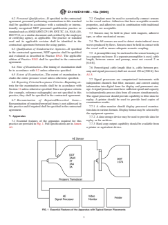 ASTM E1419/E1419M-15a(2020) is a standard published by ASTM International. Its full title is "Standard Practice for Examination of Seamless, Gas-Filled, Pressure Vessels Using Acoustic Emission". This standard covers: SIGNIFICANCE AND USE 5.1 Because of safety considerations, regulatory agencies (for example, U.S. Department of Transportation) require periodic examinations of vessels used in transportation of industrial gases (see Section 49, Code of Federal Regulations). The AE examination has become accepted as an alternative to the common hydrostatic proof test. In the common hydrostatic test, volumetric expansion of vessels is measured. 5.2 An AE examination should not be performed for a period of one year after a common hydrostatic test. See Note 2. Note 2: The Kaiser effect relates to decreased emission that is expected during a second pressurization. Common hydrostatic tests use a relatively high pressure (167 % of normal service pressure). (See Section 49, Code of Federal Regulations.) If an AE examination is performed too soon after such a pressurization, the AE results will be insensitive to a lower examination pressure (that is, the lower pressure that is associated with an AE examination). 5.3 Pressurization: 5.3.1 General practice in the gas industry is to use low pressurization rates. This practice promotes safety and reduces equipment investment. The AE examinations should be performed with pressurization rates that allow vessel deformation to be in equilibrium with the applied load. Typical current practice is to use rates that approximate 3.45 MPa/h [500 psi/h]. 5.3.2 Gas compressors heat the pressurizing medium. After pressurization, vessel pressure may decay as gas temperature equilibrates with ambient conditions. 5.3.3 Emission from flaws is caused by flaw growth and secondary sources (for example, crack surface contact and contained mill scale). Secondary sources can produce emission throughout vessel pressurization. 5.3.4 When pressure within a vessel is low, and gas is the pressurizing medium, flow velocities are relatively high. Flowing gas (turbulence) and impact by entrained particles can produce measurable emission. Considering this, acquisition of AE d... SCOPE 1.1 This practice provides guidelines for acoustic emission (AE) examinations of seamless pressure vessels (tubes) of the type used for distribution or storage of industrial gases. 1.2 This practice requires pressurization to a level greater than normal use. Pressurization medium may be gas or liquid. 1.3 This practice does not apply to vessels in cryogenic service. 1.4 The AE measurements are used to detect and locate emission sources. Other nondestructive test (NDT) methods must be used to evaluate the significance of AE sources. Procedures for other NDT techniques are beyond the scope of this practice. See Note 1. Note 1: Shear wave, angle beam ultrasonic examination is commonly used to establish circumferential position and dimensions of flaws that produce AE. Time of Flight Diffraction (TOFD), ultrasonic examination is also commonly used for flaw sizing. 1.5 The values stated in either SI units or inch-pound units are to be regarded separately as standard. The values stated in each system are not necessarily exact equivalents; therefore, to ensure conformance with the standard, each system shall be used independently of the other, and values from the two systems shall not be combined. 1.6 This standard does not purport to address all of the safety concerns, if any, associated with its use. It is the responsibility of the user of this standard to establish appropriate safety, health, and environmental practices and determine the applicability of regulatory limitations prior to use. Specific precautionary statements are given in Section 7. 1.7 This international standard was developed in accordance with internationally recognized principles on standardization established in the Decision on Principles for the Development of International Standards, Guides and Recommendations issued by the World Trade Organization Technical Barriers to Trade (TBT) Committee.