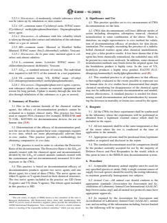 ASTM E3002-15(2023) is an international standard practice developed by ASTM International for assessing the comparative efficacy of products intended for the decontamination of chemical warfare agents (CWAs) on skin. This standard addresses the unique challenges presented by CWAs, including the need for reliable in-vivo methods to evaluate skin decontamination products, and provides a framework for quantitatively comparing their performance. It is an essential resource for organizations involved in the development, evaluation, and deployment of skin decontamination solutions in scenarios involving chemical threats.