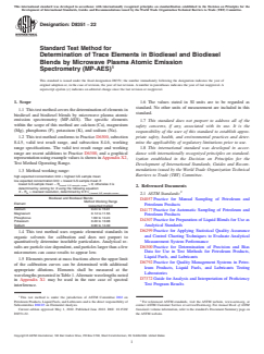 ASTM D8351-22 - Standard Test Method for Determination of Trace Elements in Biodiesel and Biodiesel Blends by Microwave Plasma Atomic Emission Spectrometry (MP-AES)