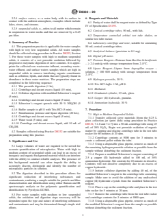1.2 This practice consists of a wet peroxide oxidation followed by progressive enzymatic digestion to the extent necessary to remove interfering organic constituents such as cellulose, lipids and chitin that are typically found in abundance in water matrices of samples with high to medium suspended solids such as wastewater influent. For water samples with low suspended solids, such as but not limited to drinking water and tertiary treated wastewater, the oxidation and digestion steps may not be necessary.