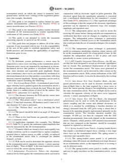 ASTM E2374-16(2021) is a guide published by ASTM International. Its full title is "Standard Guide for Acoustic Emission System Performance Verification". This standard covers: SIGNIFICANCE AND USE 4.1 Acoustic Emission data acquisition can be affected by numerous factors associated with the electronic instrumentation, cables, sensors, sensor holders, couplant, the examination article on which the sensor is mounted, background noise, and the user's settings of the acquisition parameters (for example, threshold). 4.2 This guide is not intended to replace annual (or semi-annual) instrumentation calibration (see Practice E750) or sensor recertification (see Practice E1781). 4.3 This guide is not intended to replace routine electronic evaluation of AE instrumentation or routine reproducibility verification of AE sensors (see Guide E976). 4.4 This guide is not intended to verify the maximum processing capacity or speed of an AE system. 4.5 This guide does not purport to address all of the safety concerns, if any associated with its use. It is the responsibility of the user of this guide to establish appropriate safety and health practices and determine the applicability of regulatory limitations prior to use. SCOPE 1.1 System performance verification methods launch stress waves into the examination article on which the sensor is mounted. The resulting stress wave travels in the examination article and is detected by the sensor(s) in a manner similar to acoustic emission. 1.2 This guide describes methods which can be used to verify the response of an Acoustic Emission system including sensors, couplant, sensor mounting devices, cables and system electronic components. 1.3 Acoustic emission system performance characteristics, which may be evaluated using this document, include some waveform parameters, and source location accuracy. 1.4 Performance verification is usually conducted prior to beginning the examination. 1.5 Performance verification can be conducted during the examination if there is any suspicion that the system performance may have changed. 1.6 Performance verification may be conducted after the examination has been completed. 1.7 The values stated in SI units are to be regarded as standard. No other units of measurement are included in this standard. 1.8 This standard does not purport to address all of the safety concerns, if any, associated with its use. It is the responsibility of the user of this standard to establish appropriate safety, health, and environmental practices and determine the applicability of regulatory limitations prior to use. 1.9 This international standard was developed in accordance with internationally recognized principles on standardization established in the Decision on Principles for the Development of International Standards, Guides and Recommendations issued by the World Trade Organization Technical Barriers to Trade (TBT) Committee.
