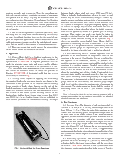 ASTM C512/C512M-24 is a standard published by ASTM International. Its full title is "Standard Test Method for Creep of Concrete in Compression". This standard covers: SIGNIFICANCE AND USE 4.1 This test method measures the load-induced time-dependent compressive strain at selected ages for concrete under an arbitrary set of controlled environmental conditions. 4.2 This test method can be used to compare creep potentials of different concretes. A procedure is available, using the developed equation (or graphical plot), for calculating stress from strain data within massive non-reinforced concrete structures. For most specific design applications, the test conditions set forth herein must be modified to more closely simulate the anticipated curing, thermal, exposure, and loading age conditions for the prototype structure. Current theories and effects of material and environmental parameters are presented in ACI SP-135, Symposium on Creep and Shrinkage of Concrete: Effect of Materials and Environment.3 4.3 In the absence of a satisfactory hypothesis governing creep phenomena, a number of assumptions have been developed that have been generally substantiated by test and experience. 4.3.1 Creep is proportional to stress from 0 to 40 % of concrete compressive strength. 4.3.2 Creep has been conclusively shown to be directly proportional to paste content throughout the range of paste contents normally used in concrete. Thus, the creep characteristics of concrete mixtures containing aggregate of maximum size greater than 50 mm [2 in.] may be determined from the creep characteristics of the minus 50-mm [minus 2-in.] fraction obtained by wet-sieving. Multiply the value of the characteristic by the ratio of the cement paste content (proportion by volume) in the full concrete mixture to the paste content of the sieved sample. 4.4 The use of the logarithmic expression (Section 9) does not imply that the creep strain-time relationship is necessarily an exact logarithmic function; however, for the period of one year, the expression approximates normal creep behavior with sufficient accuracy to make possible the calculation of parameters that are useful... SCOPE 1.1 This test method covers the determination of the creep of molded concrete cylinders subjected to sustained longitudinal compressive load. This test method is limited to concrete in which the maximum aggregate size does not exceed 50 mm [2 in.]. 1.2 The text of this standard refers to notes and footnotes that provide explanatory material. These notes and footnotes (excluding those in tables and figures) shall not be considered as requirements of the standard. 1.3 Units—The values stated in either SI units or inch-pound units are to be regarded separately as standard. The values stated in each system are not necessarily exact equivalents; therefore, to ensure conformance with the standard, each system shall be used independently of the other, and values from the two systems shall not be combined. Combining values from the two systems may result in non-conformance with the standard. 1.4 This standard does not purport to address all of the safety concerns, if any, associated with its use. It is the responsibility of the user of this standard to establish appropriate safety, health, and environmental practices and determine the applicability of regulatory limitations prior to use. 1.5 This international standard was developed in accordance with internationally recognized principles on standardization established in the Decision on Principles for the Development of International Standards, Guides and Recommendations issued by the World Trade Organization Technical Barriers to Trade (TBT) Committee.