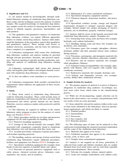 SIGNIFICANCE AND USE 4.1 An analyst should be knowledgeable, through established laboratory training, of clandestine drug laboratory synthetic routes and the techniques used in the analysis of related samples. This acquired knowledge of clandestine drug laboratory samples assists the analyst in choosing the best analytical scheme to identify reagents, precursors, intermediates, and final products. 4.2 The qualitative and quantitative analyses of clandestine drug laboratory evidence can require different approaches relative to routine seized drug analyses. Analysts shall understand the limitations of the procedures used in their qualitative and quantitative analyses. These include such factors as method selectivity, uncertainty, and the basis for inferences from a sample(s) to a population. 4.3 Laboratory management shall ensure that clandestine drug laboratory synthesis and analysis training be provided through relevant procedures, literature, and practical experience. Practical experience typically includes production, sampling and analysis of clandestine drug laboratory training samples. 4.4 Laboratory management shall ensure that chemical safety and hygiene plans address and mitigate hazards associated with clandestine drug laboratory evidence. 4.5 It does not address scene attendance or scene processing. 4.6 Laboratory management shall consider customer/local requirements which influence the application of these recommendations. SCOPE 1.1 This standard is intended to be used in conjunction with the general requirements for the analysis of seized drugs (Practices E2326, E2327, E2329, and E2549; Guides E2548 and E2329). This standard provides guidance on the chemical analysis of items and samples related to suspected clandestine drug laboratories. This standard provides general guidance for the analysis of clandestine drug laboratory evidence and is not a substitute for detailed and validated laboratory policies and technical procedures. 1.2 This standard cannot replace knowledge, skills, or abilities acquired through education, training, and experience (see Practice E2326) and is to be used in conjunction with professional judgment by individuals with such discipline-specific knowledge, skills, and abilities. 1.3 This standard does not purport to address all of the safety concerns, if any, associated with its use. It is the responsibility of the user of this standard to establish appropriate safety, health, and environmental practices and determine the applicability of regulatory limitations prior to use. 1.4 This international standard was developed in accordance with internationally recognized principles on standardization established in the Decision on Principles for the Development of International Standards, Guides and Recommendations issued by the World Trade Organization Technical Barriers to Trade (TBT) Committee.