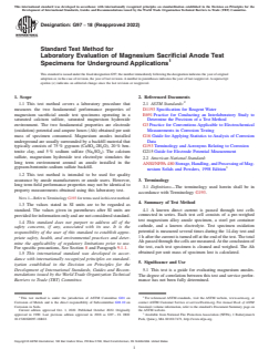 ASTM G97-18(2022) - Standard Test Method for Laboratory Evaluation of Magnesium Sacrificial Anode Test Specimens for Underground Applications