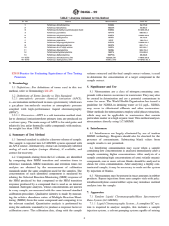1.2 This test method is applicable to nitrosamines that can be chromatographed and detected using a mass spectrometry procedure. Table 1 lists the compounds that have been validated for this test method. This test method is not limited to the compounds listed in Table 1; however, the applicability of the test method to other compounds must be demonstrated.