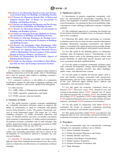 ASTM E3130-21 is a guide published by ASTM International. Its full title is "Standard Guide for Developing Cost-Effective Community Resilience Strategies". This standard covers: SIGNIFICANCE AND USE 5.1 Investments in projects supporting community resilience are characterized by uncertainties regarding the frequency and magnitude of natural, technological, and human-caused disruptions. Accounting for these low-probability, high-consequence events challenge traditional economic evaluation methods. 5.2 The traditional approach to evaluating the benefit-cost of investment decisions routinely focus on measures directly tied to loss avoidance. 5.3 Following this guide when performing an economic evaluation assures the user that relevant economic information, including information regarding uncertainties and indirect inputs, is considered for capital project facing possible disruptions from natural, technological, and human-caused hazards. 5.4 Use this guide in the planning phases of community resilience plan development process. Consideration of risk mitigation choices early in the planning process allows both greater flexibility in addressing specific hazards and lower costs associated with their implementation. 5.5 Use this guide to integrate community resilience plans with economic development, zoning, hazard mitigation, and other community planning activities that affect buildings, public works, and infrastructure systems. 5.6 Use this guide to identify all relevant inputs—that is, costs and benefits (savings)—associated with construction, implementation, and use of the capital asset, over the lifetime of the asset. Relevant inputs include direct, indirect and externalities, and non-market values. 5.7 Use this guide for economic evaluations based on Practices E917 (life-cycle costs), E964 (benefit-to-cost and savings-to-investment ratios), E1057 (internal rate of return and adjusted internal rate of return), E1074 (net benefits and net savings), E1121 (payback), E1699 (value engineering), and E1765 (analytical hierarchy process for multi-attribute decision analysis), and Guide E1369 (treatment of uncertainty). 5.8 Use this guide in conjuncti... SCOPE 1.1 This guide describes a generic economic methodology for evaluating investment decisions aimed to improve the ability of communities to adapt to, withstand, and quickly recover from, disruptive events. The methodology describes a framework for developing cost-effective community resilience strategies for new and existing constructed facilities—buildings, industrial facilities, and other critical infrastructure. This guide provides owners and managers of constructed facilities, architects, engineers, constructors, other providers of professional services for constructed facilities, and researchers and analysts with an approach for planning and comparing resilience strategies. 1.2 This guide frames the economic decision process by identifying and comparing the relevant present and future streams of costs and benefits to a community—the latter realized through cost savings and damage loss avoidance—associated with new capital investment into resilience to those generated by the status-quo. 1.3 This guide provides a means to increase the capacity of communities to objectively and effectively compare and contrast capital investment projects through consideration of benefits and costs while maintaining an awareness of system resilience. Topics related to non-market values and uncertainty are also explored. 1.4 This standard does not purport to address all of the safety concerns, if any, associated with its use. It is the responsibility of the user of this standard to establish appropriate safety, health, and environmental practices and determine the applicability of regulatory limitations prior to use. 1.5 This international standard was developed in accordance with internationally recognized principles on standardization established in the Decision on Principles for the Development of International Standards, Guides and Recommendations issued by the World Trade Organization Technical Barriers to Trade (TBT) Com...