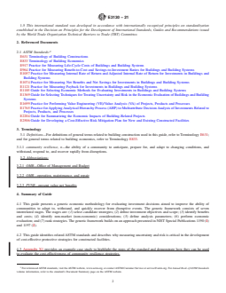 1.1 This guide describes a generic economic methodology for evaluating investment decisions aimed to improve the ability of communities to adapt to, withstand, and quickly recover from, disruptive events. The methodology describes a framework for developing cost-effective community resilience strategies for new and existing constructed facilities—buildings, industrial facilities, and other critical infrastructure. This guide provides owners and managers of constructed facilities, architects, engineers, constructors, other providers of professional services for constructed facilities, and researchers and analysts with an approach for planning and comparing resilience strategies.