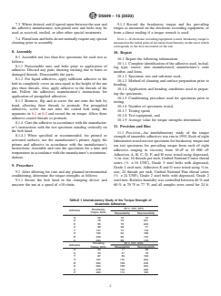 - Curing and Conditioning: The standard highlights the importance of curing adhesives according to manufacturer instructions and proper specimen handling before testing.