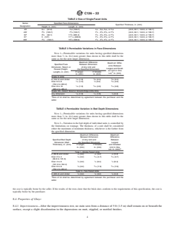 4.1 Grades—Grades classify units according to their permissible variation in face dimensions and warpage. tolerances. Two grades